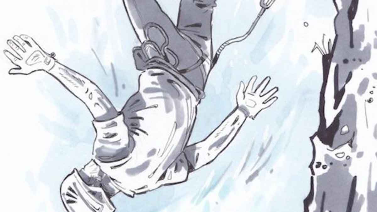 – Megcsúsztál a sziklán, és zuhantál néhány métert. A biztosítókötél megtartott, de beakadt egy kiálló faágba, ezért a barátaid nem tudtak felhúzni – magyarázza.