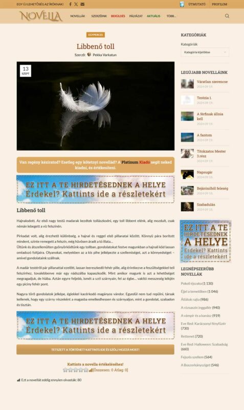 Örömmel tudatom a szerzőinkkel, és persze az olvasókkal, hogy egy hirdetési rendszer beindításával kacérkodunk. Mielőtt felhördülnél, hogy: „Már itt is a hirdetésekkel kell szembenézni”, megnyugtatlak, hogy ennek örülni fogsz.